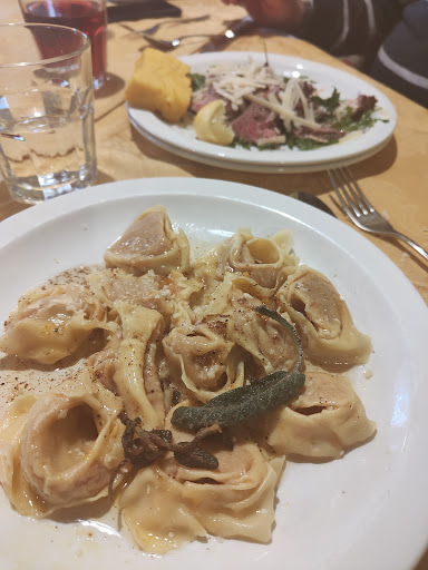 2 primi: Tortelli di carne con burro, molto buoni Tagliatelle con straccetti di carne superlativi