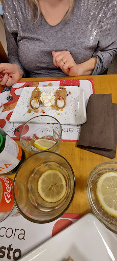 Read moreTrovato leggendo le recensioni, ci siamo tornati due sere di fila. Proprietari calabresi (si nota anche dalla presenza della deliziosa 'nduja!) molto gentili e soprattutto piatti ottimi. Le pizze grandi (molto), sottili, non bruciate e ben condite, con mozzarella vera e non quella roba industriale che non è paragonabile. Ottimo anche il salame piccante nella diavola. Ma signori...LE COZZE. Ancora ne parliamo a casa. La prima sera abbiamo provata la zuppa tradizionale (pomodoro), pulendo il piatto con la scarpetta (pane incluso, spesso una pizza bianca già tagliata). Ma la seconda, ordinando quelle gorgonzola e 'nduja... Mamma mia. Altro che scarpetta, mi sono dovuto trattenere a bere mezzo litro di sughetto. Un mix equilibratissimo di sapori, difficile perché entrambi gli ingredienti tendono a distruggere gli altri. Qui non solo li distingui ma senti pure la cozza. Capolavoro. Il tutto a nove euro...! Meritevole anche la fettina di pollo per bambini: non quella roba surgelata alla fast food ma una fetta bella grande di vero petto di pollo. Ciliegina sulla torta: coperto a solo un euro. Unico neo: bibite care, l'acqua a tre euro a bottiglia rischia di costare...