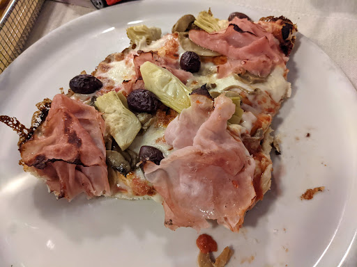 Read moreLa pizza è particolare, chi ama solo quella napoletana o quella romana potrebbe non piacergli. Qualità dei ingredienti del condimento molto buona, la mia pizza l'avrei gradita forse un poco più cotta, comunque l'ho mangiata tutta volentieri. Purtroppo qualche piccola nota negativa..di mercoledì sera alle 21.00 il bagno era un pochino sporco, dispenser della carta nel bagno degli uomini vuoto, probabilmente nelle ore precedenti è passata l'orda selvaggia di turisti che cena alle 18. Una ripulita al bagno per chi cena a un ora più mediterranea non sarebbe stata una brutta idea. Con la pizza ho optato per una birra in bottiglia, erano contate perché erano disponibili solo 3 in fresca, le altre erano ancora da mettere in frigo, anche qui sarà passata l'orda di turisti..forse i carichi delle bevande nei frigo li fanno solo a fine serata? Non credo che nel frigo ci stiano solo 3 birre per tipo tra quelle proposte alla carta. Area esterna, che comunque è sotto una tettoia/capannone, al tavolo non si può fumare ci viene detto, a 1 metro del nostro tavolo c'è l'area fumatori..il motivo per cui non si può fumare al tavolo è che poi buttiamo le sigarette per terra e la cameriera deve pulire, ...ma se mi dai il posacenere io non butto la sigaretta per terra..forse anche qui c'entra l'orda selvaggia dei turisti che in ferie si dimenticano le buone maniere? Comunque la cameriera per noi fa un eccezione, è ci porta i posacenere del area fumatori a 1 metro dal nostro tavolo. La pizza mi è piaciuta il locale un po' meno, ma niente di grave o che non possa...