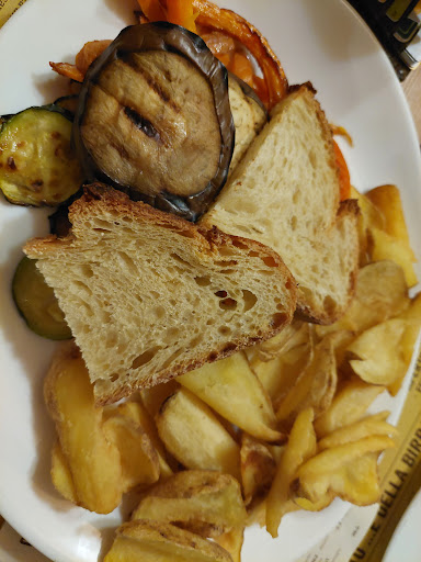 Non so se fosse perché era un lunedì e quindi un giorno con poca affluenza di clienti, ma il cibo non mi ha entusiasmato. Il pollo era un po' secco e sembrava non freschissimo, nel senso che il pollo allo spiedo, sanno tutti che diventa molto secco dopo un po' di ore o se viene semplicemente riscaldato una seconda volta. La fetta di pane che dovrebbe accompagnare il piatto, ( e menzionata nel menù) è piuttosto piccola, grande più o meno come un palmo di mano.