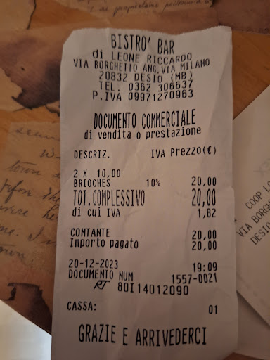 Read moreSono venuto in questo bar diverse volte per un semplice caffè ma penso che oggi sia stata l'ultima volta che ci metto piede. Ho pagato 4,80€ per un semplice cappuccio ed una cannolo alla crema che riportava il prezzo di 1,5€,quindi presumo che il cappuccino costasse 3,30€, ma l'ho scoperto solo al momento di pagare. A parte il prezzo, che reputo in ogni caso esagerato visto che non siamo a Milano o sul lago di Como, il cannolo si è letteralmente disfatto come polvere tra le mani ed anche a mangiarlo la sensazione è stata che fosse vecchio di non so quanti giorni e mentre scrivo ho male allo stomaco. A mio parere in quello stato non andava nemmeno esposto alla clientela. Brutta esperienza e rapporto qualità prezzo fortemente...