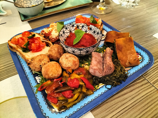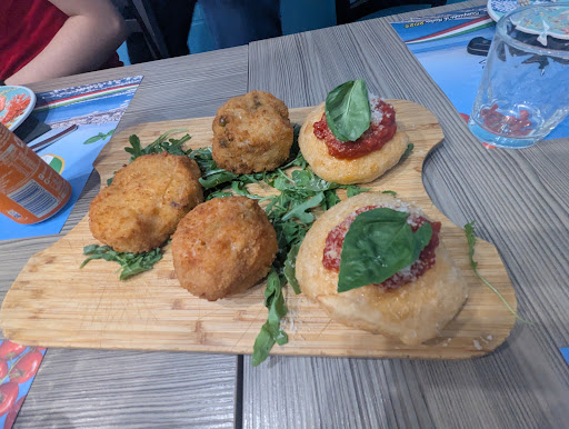 Read moreHo scoperto il ristorante pizzeria "Troppo Napoletani" di Desio su consiglio di alcuni amici trentenni che frequentano il mio stesso bar: mi avevano parlato di un locale dove si mangia bene, tanto e si spende "il giusto". Avevano proprio ragione! Ci sono andato a cenare un martedì sera, in compagnia di altri 3 amici "saliti" da Milano apposta, e la soddisfazione è stata tanta. Il ristorante si trova in una "strettoia" in pieno centro storico di Desio (la location è particolarissima e d'estate deve essere molto bella), trovare parcheggio non è semplice ed è stato uno dei pochi aspetti negativi della nostra serata. Il locale è di dimensioni contenute, quindi credo che la prenotazione sia quasi obbligatoria, soprattutto nei weekend: noi ci siamo seduti nella "saletta" che ha quattro tavoli e 20 coperti circa. L'ambiente è pulito, bene illuminato e molto colorato e pittoresco: una gioia per gli occhi. Il bagno è piccolo ma pulito e dignitoso. Lo staff è giovane, cordiale e simpatico: c'è molta disponibilità a spiegare i piatti e le portate. Il menu è molto ricco ed è consultabile su smartphone tramite QR code. C'è ampia scelta di bevande, tra queste anche il vino sfuso (con mio grande piacere). Ma passiamo al cibo, punto forte del posto. Tantissime le specialità e le sfiziosità. Fritti vari a go-go, pizzette, bruschette e delle pizze "speciali" belle ricche. Io e i miei amici abbiamo cominciato con un antipasto di terra "a scelta dello chef" e una "torre di pizzette" guarnita di ricotta e pistacchio. A seguire 4 pizze che ci hanno riempito il cuore (e la pancia): pizze napoletane, ovviamente, con bordo ampio e morbido (ma ben cotto) e abbondante farcitura. La vera sorpresa sono stati i dolci. Ci hanno portato un vassoio con le sei specialità della casa per poter "vedere" coi nostri occhi cosa avremmo potuto ordinare: non c'è stato scampo, abbiamo tutti ordinato qualcosa. Il mio super-babà ripieno era squisito. Al termine consueto giro di caffè e amari vari. Unica nota dolente: gli orari del ristorante dicono che chiude alla mezzanotte ma alle undici circa la cameriera ci ha chiesto se potevamo chiudere lì la nostra serata. Peccato, saremmo rimasti volentieri ancora un po' a chiacchierare. Conto? 29 euro a testa. Ci torno?...