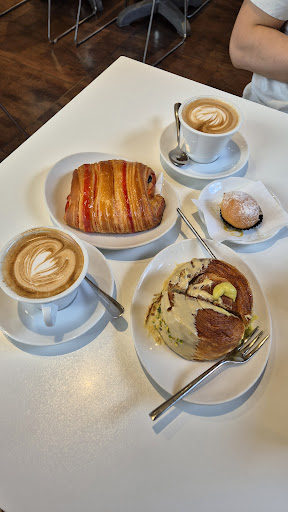 Bar-pasticceria provato per caso con un amico. Accoglienza un po' freddina e frettolosa ma probabilmente dovuta al momento caotico (abbiamo trovato parecchia gente alle 15:45 - 16:00 della domenica). Cioccolata e frolle abbastanza buone. Latte macchiato nella norma. Cannoncini corti, tozzi, all'occhio non molto invitanti, pasta poco fragrante, impressione che non fosse freschissima ma magari è semplicemente il loro modo di prepararla, serviti freddi, davvero troppo freddi (esiste una temperatura di servizio che si concilia con quella di conservazione). Molto grossi, sbriciolosi, proporzione pasta-crema non adeguata: non bilanciata la quantità di crema pasticcera rispetto alla sfoglia. Invece, per quanto riguarda il gusto, si sa essere un parametro soggettivo, ad ogni modo sia a me che al mio amico non sono piaciuti. Contesto pulito, semplice ed essenziale. Molta scelta di prodotti, da panettoni a biscotti, da pasticcini a praline ... Questo senz'altro un punto a favore qualora abbiate bisogno di rifornirvi per una ricorrenza/festa. Toilette ampia e curata, altro punto positivo. Nel complesso un ambiente poco caloroso e che non associo ad una pasticceria, trattasi di mia preferenza naturalmente. Per quanto riguarda la qualità di croissant e paste non posso esprimermi in quanto non provate ma, onestamente, dopo l'esperienza dei cannoncini (ne ho fotografato uno) penso che non sarò molto propensa a tornare. Mi spiace aver avuto un'esperienza poco positiva, anche in luce del fatto che molte altre recensioni siano invece particolarmente generose e relative ad esperienze nettamente più soddisfacenti...