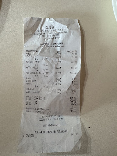 Uno schiaffo alla cucina sarda un'esperienza da dimenticare prenoti 2 GG prima fuori arrivi ti apparecchiano dentro dicendo fuori non abbiamo posto ( vuoto ) sotto il pergolato senza comunicarlo al momento della prenotazione. Durante la prenotazione ti spiegano che da loro ci sono 2 menù a prezzo fisso e uno per i bambini. Ti chiedono quale preferisci in maniera tale da organizzarsi per quanto riguarda il menù con porchetto prezzo 40 euro, Comunque comunichi i vari menù e chiudi il telefono con ci vediamo domenica. Arriva la domenica ti presenti comunichi il nome della prenotazione sorpresa mangi dentro comunque ti siedi e aspetti che ti chiedono il green pass. A nessuno dei commensali all'interno della sala viene richiesto il green pass e chi ti accoglie molto poco professionale. Incomincia il pranzo 9 persone 1 bottiglia di acqua e una di vino e otto fette di pane e una marea di carasau, 2 piattini di ceci 2 scodelle di lumache immangiabili,2 piattini di fave lesse, 2 piatti con 4 fette di ricotta salata e 4 fette di carasau con una crema di pecorino e affettati, considerando che i ceci e le fave costano nulla potevano essere un po' più blandi con il resto comunque degli antipasti l'unica cosa che meritava erano le melanzane e la crema di pecorino. Passiamo al primo gnocchetti sardi culurgionis ravioli tagliatelle queste sono le scelte di cui solo una può essere scelta richiediamo gnocchetti ravioli culurgionis Culurgionis crudi ravioli crudi con un sugo improbabile i gnocchetti sono piaciuti forse perché la salsiccia ha insaporito un sugo anonimo. Nel frattempo in tavola l'acqua e il vino sono terminate 1+1 per nove persone. Arrivano i secondi porchetto per gli adulti e per i bambini hamburger. Porchetto più che eccellente gli hamburger pessimi solo carne magra di bovino cotta alla nonpiastra e anche male praticamente i bambini avevano nel piatto cartone, chiediamo se è possibile avere la maionese risposta della cameriera si un attimo torna al tavolo non abbiamo maionese quindi i bambini non riescono a mangiare i cartone burger. Dopo aver chiesto un po' di pinzimonio richiesta che ci è sembrata inopportuna portano l'acqua e una bottiglia di vino comunque portano 1 finocchio per 9 persone e 8 coste di sedano e qualche ravanello tenete presente il tutto senza portare olio sale e pepe. Arriviamo al dolce si perché di frutta neanche l'ombra non si usa servirla, 1 piattino da frutta con 8 e dico 8 dolcetti secchi. Morale della favola per un servizio del genere e una cucina del genere 280 euro non discuto i prezzi perché ognuno nel proprio locale applica quelli che ritiene più giusti e non ti obbligano a mangiare da loro, però con un servizio così anche 5...
