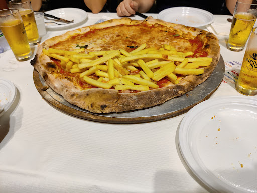 Read morePosto da evitare, ecco i motivi: pizza con impasto scadente, cottura pessima e ingredienti non sono di qualità. I prezzi sono alti e non conviene neanche avvicinarsi per il proprietario maleducato. Mia moglie è mio figlio sono stai in bagno tutta la notte e credo che sia stata la mozzarella scaduta o forse l'mpasto. Vi consiglio di andare altrove ma non vi aspettate la qualità pizza napoletana ma questo posto non è degno di vendere un prodotto come la pizza. Infatti ho mangiato la pizza anche a New York ed è migliore di questa. Il posto è molto scomodo per sedersi e mangiare la pizza maxi perché servono solo questa misura (non è neanche fatta a mano ma con macchina) quindi con tavoli piccoli e sedie di plastica scadenti e stata un impresa rimanere seduti e mangiare tranquillamente l impasto di pizza industriale. Mi e dispiaciuto vedere e notare molti clienti stranieri e del nord Italia mangiare questa orribile pizza e lamentarsi del servizio e come citato prima del proprietario maleducato. Lo staff guidato dal proprietario durante il servizio, ha pure trattato male i clienti che volevano semplicemente cambiare i tavoli per via della pioggia incessante pretendendo di mangiare la pizza mentre pioveva e potevano anche bagnarsi a lui non importava proprio. In conclusione evitate...