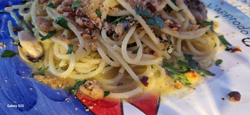 Read moreL'approdo. Un posto dove non approdare MAI!! Schifo è dire poco. Dare Zero come voto sarebbe dargli comunque valore. Penso che non mi sia mai capitato in tutta la mia vita di vivere un esperienza del genere! 2 giorni fa io e il mio compagno prenotiamo un tavolo da 2 per le ore 22:00 Bene. Arriviamo sul posto con 10 minuti d'anticipo , il titolare dopo aver trovato la nostra prenotazione ci dice che l'orario che avevamo concordato con lui era per le 21 e che quindi avevamo perso il tavolo perché occupato. (Era impossibile. Non abbiamo prenotato alle 21 perché a quell'ora non potevamo ) Ed era solo per giustificarsi per aver dato il nostro tavolo a qualcuno prima di noi. Cosa che ci poteva stare , ma bastava essere onesti e dire la verità. Invece voleva farci passare per idioti facendoci credere che l'errore fosse stato nostro. E già qui era partito male. Bene, vogliamo parlare del servizio? Inesistente , lentissimo e se chiedevi una qualsiasi cosa puntualmente dovevi sollecitare perché se ne dimenticavano sempre. Ordiniamo 2 primi. Ma ne arriva solo uno . Il mio compagno innervosito si rifiuta di mangiarlo aspettando che arrivi anche il mio . Pensando fosse questione di qualche minuto. Ma invece ne passano 20 ( senza esagerare). Il piatto del mio compagno si fredda. Finalmente un cameriere si degna di venire al tavolo capisce la situazione , si scusa , riprende il piatto completamente pieno ma ormai freddo e ci dice che ne avrebbe fatto fare un altro e che sarebbero arrivati insieme. Bene. Trascorrono altri 30 minuti , e finalmente i 2 piatti arrivano ma ormai era passata la fame un po' per il nervoso e un po' per il tardo orario. Erano le 23:30 . Avevamo ordinato 2 fritture di pesce ma il mio compagno chiede al cameriere di cancellarle considerati i precedenti altrimenti avremmo fatto l'alba. E infine chiediamo il conto. Bene. Decidiamo di alzarci dal tavolo per andare direttamente alla cassa per non aspettare ulteriormente altri 30 minuti. Chiediamo ad un cameriere il numero del nostro tavolo e ci risponde di andarci a sedere e che sarebbero venuti loro da noi perché non sapevano bene i numeri dei tavoli. ( Posso garantirvi che non è uno scherzo) Ok increduli ci sediamo sperando di riceverlo al più presto ma non si vede più nessuno. E così trascorrono 15 minuti, chiediamo ad un cameriere che ci dice che ce l'avrebbe portato subito , ma nulla. Trascorrono altri 15 minuti e lo stesso cameriere serve ad altri tavoli , dopodiché richiediamo il conto e dopo altri 15 minuti circa arriva il nostro conto. Innervositi e stanchi perchè ormai mezzanotte, ci alziamo paghiamo e all'uscita cameriere e titolari dispiaciuti del servizio della serata che però ci hanno fatto pagare fino all' ultimo centesimo😉 Qualcosa da aggiungere? Direi solo EVITATELO...