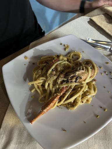 Il ristorante è alquanto buio, poco visibile dalla strada secondo me. Per farvi capire, ordiniamo l'antipasto, e nel polpo con patate ci ritroviamo un capello, quasi come se volesse prepararci a tutto ciò che ci sarebbe aspettato: il pesce nel complesso era di un livello normale, non eccelso ne scadente, ma il servizio davvero pessimo, nemmeno nella bettola più lercia d'Italia si sarebbe visto una cosa del genere: tra una portata e l'altra abbiamo aspettato quasi 50 minuti, i secondi ci sono arrivati a rate...ci siamo seduti alle 20 ed alzati alle 22:30, rovinandoci completamente i piani per la serata e l'umore. Arrivatici le fritture, dopo 50 minuti di attesa, chiediamo subito il conto e la proprietaria con fare ironico mi domanda se lo avessi chiesto per non aspettare ancora, cosa decisamente irritante!! Del tempo aspettato, nessuno è venuto a scusarsi se non una bimba, nipote della proprietaria, unica nota dolce in una serata amarissima. Abbiamo speso in totale 45 euro a testa, eravamo in 4, per un totale di 180 euro (il prezzo iniziale era di 184, ma data la pessima serata, avrebbero dovuto levarci almeno 15-20 euro, almeno!!), un prezzo davvero esagerato, dato il servizio in primis, e in secundis il pesce di livello discreto ma non ottimo. Chiedo lo scontrino e la proprietaria con fare irritato riesce a farci aspettare anche per quello... Non ho mai mangiato così male, non sono mai stato servito così male, e non ho mai speso così tanto in relazione a quanto mangiato in 23 anni di vita in un ristorante. SE TENETE AL VOSTRO PORTAFOGLIO E SE VOLETE PASSARE UNA SERATA MIGLIORE, SCONSIGLIO VIVAMENTE, ci sono sicuramente ristoranti migliori a Diamante dove mangiare,...