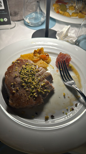 Il ristorante si trova nel centro storico di Diamante e si affaccia sulla parte bassa del paese creando una bellissima atmosfera e un po’ di venticello che fa sudare meno durante le calde serate estive. Il menù propone vari primi e secondi mentre gli antipasti sono più ristretti o meglio si può scegliere solo il loro antipasto misto (costo 18€) che viene servito su una grande tavolozza ed è composto da vari assaggi di pesce, tutti buonissimi. Volendo si può anche dividerlo in due. Entrambi i primi che abbiamo preso, erano spettacolari e memorabili. La frittura per concludere, per fortuna che l’abbiamo divisa, perché era molto abbondante e anch’essa buonissima. L’unico punto negativo sono stati i tempi di attesa piuttosto lunghi per i primi e per il secondo. Non capisco come mai il punteggio totale delle recensioni sia solo di 4.1…. Anche i prezzi sono nella media del posto… certo sono leggermente più alti rispetto a una trattoria o un ristorante periferico ma non sono assolutamente sproporzionati o proibitivi. I vini da come ho potuto intuire invece hanno un ricarico piuttosto...