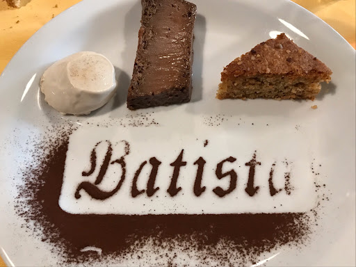 Read moreNella pieno della tradizione che ho trovato spesso qui nelle Langhe, anche al BATTISTA il menu lo fanno loro. Ed è pura soddisfazione provare questi ottimi piatti della tradizione piemontese serviti direttamente dalla padella in cui lo hanno preparato, rilasciando nell’aria, nel Piatto e in bocca un sapore di cibo autentico. Nessuna portata potrà deludere, nessuna è troppo abbondante da lasciarla nel piatto e giocando sul numero delle portate alla fine vi troverete ad allargare la cintura dei pantaloni. Ogni piatto respira dell’aria del luogo, acquisendone semplicità ma mantenendo una preparazione raffinata esaltando le ottime materie prime usate, preparate anche usando l’elemento d’eccellenza presente in zona: il VINO. Vino che gustato in un bicchiere ampio (parlando degli ottimi Rossi che ritengo inutile citare) aggiungono all’esperienza generale maggiore carisma e un’accelerazione al raggiungimento di soddisfazioni degustative. Il locale è raffinato e rustico allo stesso tempo, semplice ed elegante. Il servizio è presente ma non invasivo e sopratutto eccellente. Il prezzo si mantiene nei giusti ranghi anche grazie al menu unico condiviso dai molto commensali presenti in sala. Se non si desidera seguire il sentiero comune si può comunque scegliere alla carta dal menu. La fine del pasto si conclude con buoni dolci locali che personalmente non mi hanno totalmente soddisfatto, ma dipenderà dai miei gusti immagino. Ma almeno alla fine hanno aggiunto grappa (ovviamente al barolo) da degustare con tutta la calma possibile (preziosa caratteristica la calma a tavola).
