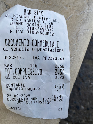 Read moreStorico bar del Dianese , centrale e sulla via Aurelia con tavolini sulla passeggiata a mare ! Non lo frequento più da qualche anno a causa degli anziani gestori , in particolare la Signora che mi fece pagare la focaccia acida buttata nella pattumiera ! Caffè buono ma troppo interesse al profitto per cui vado altrove e non lo...