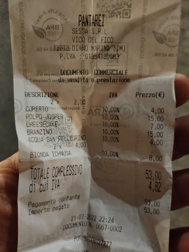 Read moreE' una domenica di luglio e decidiamo di andare al Pantarei....non potevamo fare scelta migliore di questa. Qui trovi tutto ciò che nn ti saresti mai aspettato di trovare a Diano Marina. Gia!Originalita' del posto,cordialita',sorrisisi,disponibilita' massima nei confronti del cliente e la giusta eleganza capace di farti sentire a casa tua. Piscina fantastica.. lettini...ombrellone...asciugamani puliti e soffici a disposizione del cliente...secchiello con acqua fresca a volontà!...che dire,di più nn si può chiedere!!!... E invece no!!il pranzo si rivela un altra nota super positiva del Pantarei. Un ottimo crudo di mare ed un fritto di mare super top...il tutto accompagnato da una grande professionalita' di tutto lo staff. Non per ultimo bisogna citare il titolare...un personaggio unico,anzi come piace definirlo a me...un ottimo padrone di casa! Missa' che ne sentiremo parlare sempre di più di questo posto! Enjoy by Pantarei .... e tanto tanto altro da...