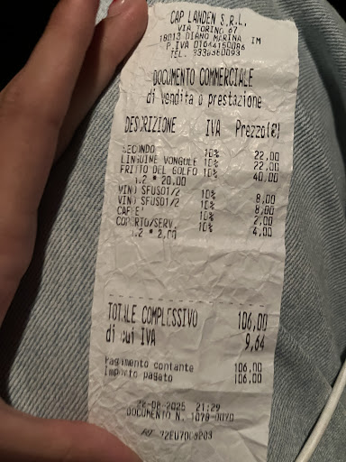 Read moreLa location offre una vista mozzafiato, ma purtroppo la gestione non è all’altezza. Non esiste un menù scritto e le portate vengono presentate solo a voce, circostanza che può generare confusione sui dettagli dei piatti, soprattutto riguardo ad allergeni o all’uso di prodotti surgelati. Il personale, seppur gentile, appare inesperto e i tempi di attesa sono risultati lunghi. La cucina non ha convinto: pasta alle vongole con residui di sabbia e fritto misto con gamberi crudi. Al momento del conto ci è stato addebitato un mezzo litro di vino in più rispetto a quanto consumato. Non sarebbe stato un problema pagare 8€ oltre il dovuto, se almeno l’esperienza avesse soddisfatto le aspettative. Un vero peccato, perché una location così meriterebbe una...