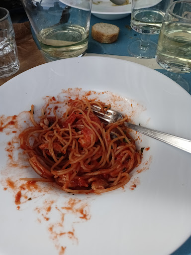 È molto raro che scrivo una recensione, ma deve essere così: Non è un ristorante, è un posto dove mangiare all'interno di un campeggio! Il termine è semplicemente uno scherzo! Il cibo in sé era semplicemente un disastro! Dei pochi piatti presenti nel “menu”, erano tutti in realtà incompleti o non disponibili affatto. Ci è stato offerto il “pasto del giorno?!” che erano linguine con gamberoni, ma tutto era mescolato insieme. E poiché la carne dei gamberoni era cotta, una volta tolta dalle linguine non rimaneva praticamente più cibo. E tutto questo a prezzi da ristorante, più il coperto. La bella insalata era commestibile, ma niente di più. È un vero peccato perché la spiaggia è davvero bella. Sarebbe una posizione incantevole per un vero ristorante. O sospettiamo di essere stati derubati come stupidi tedeschi o, peggio ancora, che sia sempre così e il proprietario può addebitare i prezzi a causa della posizione. Anche il campeggio di fronte fa una triste impressione. Il servizio era abbastanza ok. E ancora una cosa: gli italiani preparano una ciabatta così meravigliosa. Allora perché mangiare questa baguette secca e scadente. Non consiglierei di...