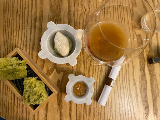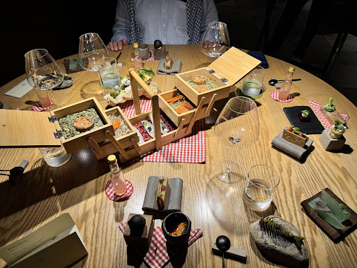 Read moreI almost never give five stars, especially not at this price level (100 plus wine). But this was perhaps the best one star place we had ever dined at, and some dishes, such as the cod and ravioli (bringing the flavor out so starkly from a few leaves of rocket salad was masterful), are in the neighborhood of warranting a second star. The dinner starts with a picnic, very creative. The wine pairing and explanation could be a bit better, and turning focaccia and butter (excellent, but nevertheless... focaccia and butter) into a separate course was a bit too many carbohydrates to enjoy while retaining appetite for the rest, but those were just tiny drawbacks of an overall excellent experience. The chef came out and greeted us; a much appreciated gesture. I have the feeling he has great talent and is eager to...