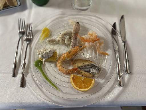Il menù offre un ampia scelta di piatti di pesce. Io ho provato l'antipasto di cozze e vongole, le cozze non erano buonissime ma il sughetto con i crostini era delizioso.