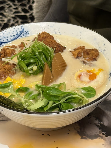 Il personale è molto cortese e l’ambiente davvero curato, con un’atmosfera piacevole. Scelta della musica in sottofondo abbastanza discutibile. Il cibo è stato una vera sorpresa: qualità altissima e sapori autentici. Ho scelto il riso con l’anguilla, semplicemente spettacolare, anche se la porzione era un po’ più piccola di quanto mi aspettassi. Ho poi assaggiato il ramen vegetariano ordinato da mia sorella, che non è riuscita a finirlo perché era abbastanza abbondante. Il brodo era semplicemente eccezionale, uno dei migliori che abbia mai provato: talmente buono che non ne ho lasciato nemmeno una goccia.