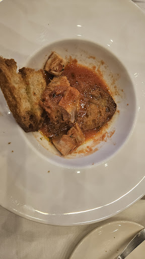 A really fabulous restaurant, great wine list and well priced. The service was excellent and the food fabulous. I have eaten in many Michelin starred restaurants and have to say the food here was equally as flavoursome, beautifully cooked and elegantly served. Great ingredients and simple cooking equal a diners delight. Bravo. I had for my main a Montana of king prawns and langoustine served on bed of ribbons of slightly pickled vegetables which was fantastic, my wife had a pumpkin and cauliflower cream served with herbed croutons as her starter and a sea bass with sautéed peppers and black olives as her main course. Price stated was with. One glass of chianti, two glasses of vermentino and a bottle of water. For the quality of the food this was a...