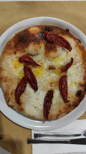 Siamo venuti in questo locale per il menu "Pizze in passerella". È una sorta di All-You-Can-Eat con i prodotti da forno della pizzeria. Si inizia con i Bombolotti, palline di pasta di pizza fritte accompagnate da prosciutto crudo e porchetta affettata. A seguire la Farinata, buona e leggera, poi le Pizze al tegamino, morbide e soffici. A quel punto sono arrivate le Pizze al mattone. Le prime due erano bianche e leggere (mozzarella e rucola una, pere e gorgonzola l'altra) e seppure io non ami molto la pizza senza pomodoro devo ammettere che erano buonissime. Le ultime due le abbiamo ordinate noi: capricciosa e diavola, altrettanto buone. Come dessert un Cuore caldo al cioccolato che si scioglieva in bocca. Ottima esperienza da ripetere con delle "buone forchette" in modo da assaggiare qualche...