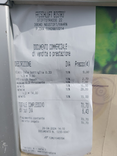 Read moreIst ein nettes, gemùtliches Bistro in Neustift bei Brixen. Die Bedienung ist freundlich. Es gibt kleine Imbisse, Caffe u. Eis. Auch befindet sich bei Bar ein Tennisplatz. Ein dazugehòriger, schóner Kinderspielplatz bietet den Kindern bis ca. 10 Jahren gute Unterhaltung. Eine Schnelle Rutsche mit einem Kletterhaus ist das Extra auf dem Spielplatz. Zu empfehlen fùr einen schònen Tag mit...