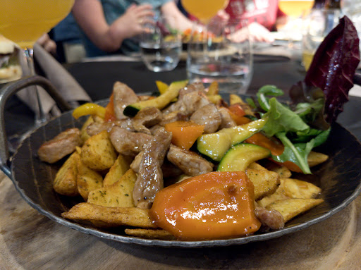Long: Right in the centre of Brixen, a decent choice of mostly meaty dishes (it's called grillage...) and a very friendly service. Been there on reservation with a bigger group including children and we got served fast and the waiters even helped to calm or entertain the children. The ambience is nice, rather noble and there's a beautiful outside area on an old town street just up front. Pricing is not cheap, and there's not exactly a plethora of choices, but the quality is good and everything seems very clean. Try the nice local beers! As far as I've seen there's no parking space right up front (it's in the narrow alleys...