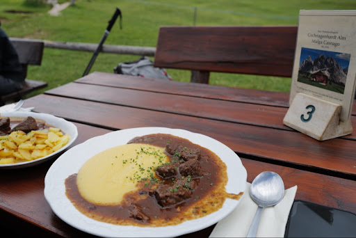 Read moreAt the end of our hike, we had lunch in here. They served traditional and typical South Tyrolean dishes. It was particularly busy on that day ( the other restaurant was closed ) we waited for about 30 minutes before we got our food. We ordered goulash with canederli and elderberry juice for our drinks. Food was great ! Prices are average. The Geisler/Odle peaks is just behind the restaurant. We had an...
