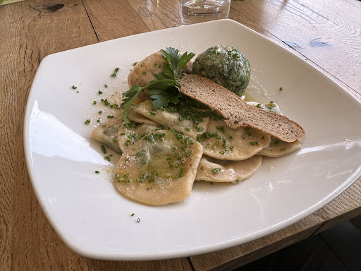 I would recommend this place for both a pizza or something more elaborated. Possibility to eat inside as well as outside, where families can let their children play on a near playground - in...