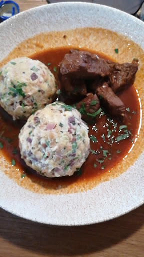 Read moreEn estos momentos estoy justo acá, mi hija ordenó una lasagna che estaba rica, pero echa al modo peruano apesar que fue echa por alemanes. Grande, muy jugosa, hirviendo y gustosa.lo único malo es que mi pobre hijita encontró un cabello muy fino y parecía rubio, entonces pensó que era de ella y no lo devolvió, yo me quedé mirando y limpie el cabello era blanco, posiblemente de la chef, por que no era corto como de un hombre. Yo estoy esperando mi goulash. Aver que tal estará. No me gusto el gulash le pusieron tanto vino rojo que estaba amargo y el canederli muy ceco, pague 17.50 por eso y no lo pude ni comer, mejor pedía carne ala parrilla que vi una chica comer, pero como su meno esta en inglés, alemán e italiano y no tienen fotos, no vi la carne y pensé que solo vendían ese tipo de cosas. De verían tener más cuidado con la gente que cosina, devén usar gorro así los cabellos no caen. Una de las personas que atiende una mujer era muy amable, el...