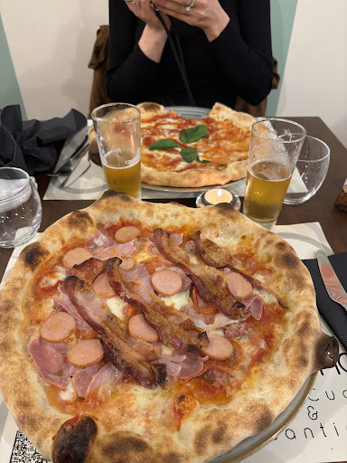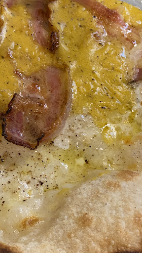 Venite a leggere la vita fino in fondo, siamo andati in questa pizzeria, secondo le note, o erano state fatte da amici, o da persone completamente ignoranti in fatto di pizza. Dopo un'ora e 15 minuti di attesa, le pizze che ci sono state consegnate sembravano invitanti, ben lievitate, impasto ben cotto. Non lo so, non lo so perché siamo francesi, ma dopo un'ora di attesa per tre pizze ce ne siamo quasi andati. Le pizze sono arrivate anche a casa degli altri. Sinceramente penso che non ci fosse più pasta e che il signore abbia appena fatto l'impasto. Pasta non lievitata, forno, le tre pizze Senza condimento. I clienti davanti a noi alla cassa stavano litigando con il proprietario, credo che anche loro abbiano avuto una brutta esperienza, noi non capiamo l'italiano, ma ovviamente era per il prezzo e per quello che avevano mangiato. In ogni caso, da parte mia, evitatelo. Vi consiglio di cambiare lavoro; state portando vergogna all'Italia con le tre pizze che abbiamo mangiato.