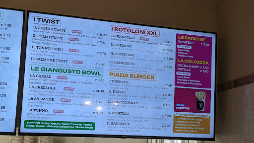 Ci sono stato una volta a mangiare in compagnia e mi sono trovato bene. Ho ordinato una piadina in stile classico 'La Trentina', e una piadina con l'hamburger 'Piada Burger-Il Doppio'. Entrambe le piadine erano molto buone, e gli ingredienti si sentivano tutti. La piadina classica era riscaldata e ciò faceva sì che lo speck e il brie caldi la rendessero gustosa e saporita. Quella con l'hamburger, invece, era di una forma abbastanza insolita ma di un ottimo gusto, sia la carne, sia il formaggio fuso sopra, che insieme creavano un'ottima combinazione. Forse, un pizzico di sale in più gli avrebbe dato più sapore. L'unica pecca però, quantitativamente parlando, stava nella piadina classica, che secondo me era abbastanza grande di dimensioni, ma non era molto farcita. Datone il prezzo (più di 6€), l'avrei riempita un po' di più. Per chi è di 'bocca larga' come me, potrebbe dover prenderne almeno 2, per saziarsi. In tutto, con bevuta ho speso circa 17€. Il luogo internamente è piccolo ma abbastanza carino nello stile. Presenta svariati tavoli all'interno e un lungo bancone dove mangiarci. Il servizio è stato veloce e il personale cordiale e gentile. Questa piadinera si trova di fronte allo stadio da calcio Carlo Castellani, della cittadina di Empoli. Per chi si reca in auto, ci sono tanti parcheggi gratuiti nelle vicinanze....