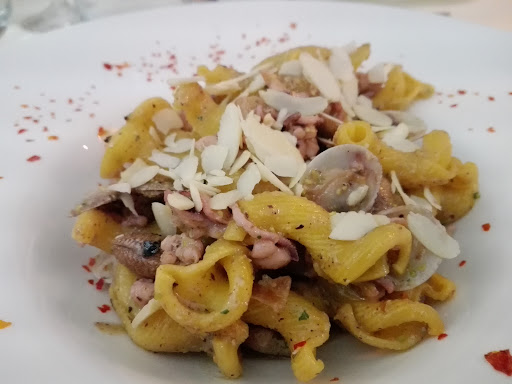 We have travelled through entire of Italy and this was the worst place we ever ate in Italy. The restaurant looks very fancy although it’s a self created terrace on the street in front of the train station. We ordered bruschetta’s with tomatoes, fried fish and pasta carbonara’s. Quiet simple Italian dishes. The bruschetta’s were so salt that it felt that the salt shaker was fallen on it. We returned the dish, and needed a bottle of water to wash away the salt in our mouth. The fried fish wasn’t really fried, it was quiet sponchy. For a fish restaurant you should be a able to fry fish good. The pasta carbonara was again so salt that it felt like you swallowed sea water. Too bad. Normally I don’t return dishes or I do pay the bill but this food wasn’t good at all. Or the cook had a bad day or the cook cannot cook. Cancelled the bruschetta & pasta’s and we still had to pay €45,- for 3 glass of wines, 1 bruchetta and one fried fish. Make your own conclusion. For us it was bad food with a rip off at the end. Our tip: walk further down the street (away from the station) and you’ll see a little square full of restaurants, music and good food. We feel bad for this restaurant but this is an...