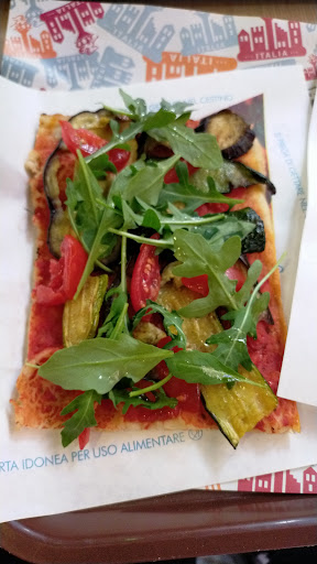 Read moreUn po' da rivedere il tutto. Prendiamo quattro pezzi di pizza, due vengono riscaldati e due no. E già qua qualcosa non quadra. Ho mangiato una bianca al gorgonzola e fiori di zucca, gelida. Ti chiedono quando deve essere grande il pezzo della pizza, perché ahimè l'ho capito dopo. Non vendono la pizza a trancio e prezzo chiaro come tutte le pizzerie ma, a peso. Sono rimasto stupito e deluso nello scoprire che ho pagato per un misero trancio di pizza bianca con gorgonzola , mozzarella e due fiori di zucca, la bellezza di quattro euro e settanta. Un trancio sottile e anche piccolo. Al momento Dell ordinazione sulle pizze (all'interno del banco) due mosche amoreggiavano. Che dire, delusione completa, prezzi troppo alti, ripeto 4 tranci di pizza la bellezza di quasi 15 euro. Poca chiarezza e pizza non eclatante ma banale e nella media. Apprezzabile i posti all esterno...