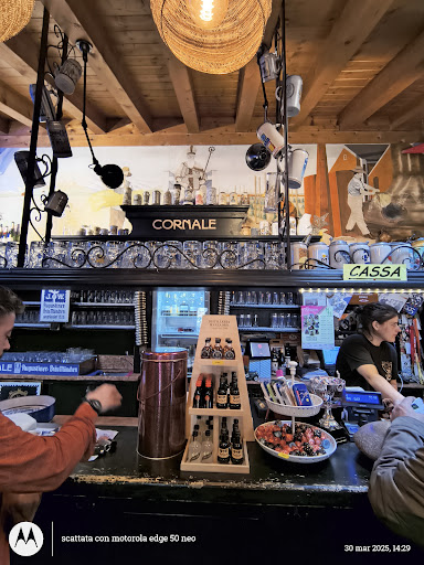 Read morePranzo informale tra amici, di ritorno da una cerimonia pagana in alta quota. C’era da scegliere tra pizza e cucina veneto-bavarese. Sulla pizza niente da dire: non l’abbiamo presa; . Per quanto riguarda la cucina veneto-bavarese niente da dire: OTTIMA!!! Gli spatzlen ce li siamo spatzlati ;) i canederli buoni in tutte le salse (anche in brodo che, vista la fresca giornata sono stati un toccasana) superlativi anche i piatti di carne tra i quali mi sento di consigliare con particolare vigore le costolette di cervo [queste sì, in tutte le salse in senso letterale: le hanno servite accompagnate da un tricolore di salse che ancora non saprei dirvi se fosse un omaggio all’italia o al messico (quella rossa poi -molto buona- non saprei se mirtillo, lampone o ribes) ] invece sul trancio di würstel con rösti potevamo risparmiare. Ma questo è un giudizio del tutto personale: il mio amico Canio l’ha apprezzato molto (ancora si lecca i lunghi e bruni baffi al pensiero). Consigliabili anche le patatine fritte in entrambi i modi: classiche o con la buccia. L’assortimento di birre è all’altezza della tradizione Bavarese e il caffè apprezzabile anche da palati italiani. Personale cordiale ed educato e conto proporzionato - intendiamoci: non ti regalano niente, ma, si sa, ogni cosa ha il suo pretzel, a proposito i pretzel costano 2€ l’uno. Ma li...