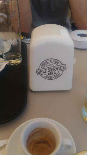 Read moreIl classico chiosco acchiappa bagnanti. Prezzi alti considerando che è un self service in cui ti piazzano in mano in vassoio e devi pensarci tu ( anche per i caffè). Non ti sembra di essere in riva al mare ma in un normale self service di una zona industriale o di una città. Alla cassa hanno la stessa empatia delle macchinette del Mc.. se solo temporeggi trenta secondi, il tizio è lì che scalpita scocciato e ti fa sentire di corsa appena arrivi ( per la serie sbrigati che devo passare a quello dopo ).Tutto l' ambiente è caotico. Alla cassa urlano a squarcia gola le ordinazioni .Camerieri che corrono qua e la con viso di ghiaccio ( anche se poverini loro sono gentili)...non è rilassante. Il cibo è nella media. Bellissima la veranda, con fiori e ombra; ma anche lì è difficile rilassarsi perché appena finisci tempo trenta secondi e arrivano a sgomberare il tavolo facendo capire che devi lasciare il posto. Se potete a due passi...