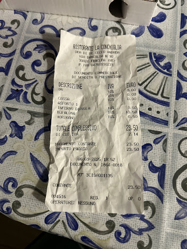 Read moreTerrificante. Arrivati 20:35 con due bimbe di 7e 8 mesi. Ordinato alle ore 20:51, poi il delirio, passata mezz’ora abbiamo chiesto quanto c’era da aspettare, giusto per un idea. la risposta è stata guardi le hanno appena infornate (pizze), bhe, sono arrivate dopo un ora e mezza. Ore 22:30 circa abbiamo iniziato a mangiare, pizza terribile c’erano i gamberetti che puzzavano in una maniera atroce. il titolare almeno credo, si avvicina al nostro tavolo, quando avevamo quasi tutti finito di mangiare, dico quasi tutti perché io non avevo ancora finito, (bimba che aveva bisogno delle sue attenzioni) e esclama, per scusarci per l’attesa,, posso offrirvi qualcosa , liquirizia, caffè? Vi giuro, avrei voluto ridergli in faccia. Aveva fretta di chiudere? Non poteva passare 5 minuti più tardi? 😒 o quale altro motivo c’era? 🙂↕️ no io una cosa del genere .. mai vista. E credo proprio non ci rimetterò più piede! Il servizio per carità, camerieri tenuti bene ma bugiardi a questo punto .. e senza il controllo della situazione… Il conto...