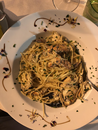 Read moreIL TAVOLO FANTASMA Vi racconto in breve la mia esperienza: Eravamo 6 adulti e 3 bambini di 6 mesi che non cenavano e volevano farci pagare pure il coperto di questi 3 bambini ma alla fine lo abbiamo fatto togliere dallo scontrino. Come location do voto 5 stelle perché un locale davvero molto bello immerso nella pineta. A livello di cibo ci sono delle piccole pecche in quanto l’antipasto di mare un po’ scarso e con pesce non di prima qualità! Abbiamo preso la pasta con scampi e carciofi( e di scampi si sentiva poco il sapore coperto dal peperoncino e dal sapore di carne ) linguine al salmone il salmone era buono ma la pasta un po’ meno! Il fritto misto non era dei migliori soprattutto per il prezzo 22€ penso che 18€ sarebbero stati più che sufficienti! Per quanto riguarda il servizio è un po’ da rivedere in quanto abbiamo ordinato da bere una seconda caraffa di vino alla spina e ci è stato detto: “ ma si te lo porto tra 5 minuti dai” pessima figura in quanto dopo 20 minuti ho dovuto sollecitare il cameriere; devo dire che alcuni camerieri la mascherina la tenevano sotto il mento anche quando servivano i piatti ( con sto tempo di covid sarebbe meglio evitare) Infine dopo essere rimasti in 3 tavoli siamo stati dimenticati dallo staff perché un cameriere si è perso via con il cane e l’altro si è fermato all altro tavolo ( erano suoi amici immagino perché rideva e scherzava con loro ) e noi dopo più volte che abbiamo chiesto il conto ci siamo dovuti alzare e andare a chiederlo alla fine come prezzi un po’ fuori dalla media siamo tornati a casa insoddisfatti! Che poi siamo andati via e lo scontrino non c’è l’hanno mai dato ma solo quello di cortesia diciamo non fiscale Peccato come posto mi sarebbe piaciuto un sacco spero...