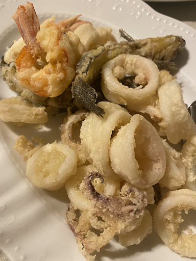 Ristorante poco fuori dal centro di Eraclea paese. L'arredamento del locale è curato, l'ambiente è climatizzato. Ci sono tavoli disponibili anche all' esterno, ma non sono usati in questi giorni (agosto 2024), credo per il troppo caldo. Il ristorante lavora col pesce fresco, quindi la maggior parte dei piatti è dettata a voce dal cameriere, anche se chiedendo è disponibile un menù cartaceo. I piatti sono semplici ma genuini, i prezzi in linea con i ristoranti di pesce. Abbiamo preso un antipasto di scampi crudi in due (5 scampi), poi due piatti di spaghetti allo scoglio con scampi, capasanta, gamberetti e vongole, ed infine una frittura di calamari da dividere in due. Due calici di vino, acqua per un totale di 108 euro (agosto 2024). La pasta era buona, anche se nulla di eccezionale (forse mancava un po' di peperoncino?), anche se a dire il vero, col coperto ci è stato portato la macina del sale e del pepe, olio di oliva extravergine. La frittura buona, ma troppo salata già al primo assaggio: poi la bocca salata è rimasta per tutto il pomeriggio :-( Buoni i vini in mescita (c'era un fiuliano, un collio, del glera e l'immancabile prosecco). Parcheggio gratuito...