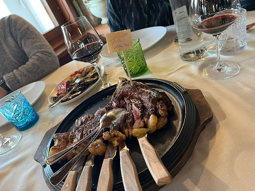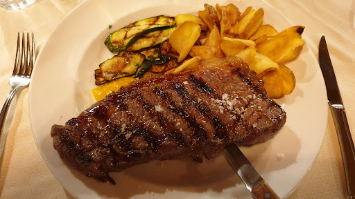 I have no idea why people give this dump a good review ..... I travel quite a lot for work and noticed that the place looks a bit up class so I dressed accordingly and expected top service and great food. Despite being a specialized grill restaurant the steaks were horrendous. My daughters New York "steak" was 1/3 fat instead of being nicely marbled. My local steak was 1/4 fat, I ordered it medium and the thing delivered had parts that were well done, medium, medium rare to rare. No consistency at all. And it was delivered pre-cut so they could have seen it even!!! Next to that, the menu stated that I would receive fried potatoes ..... what I received were french fries vey simular to what you get at the fast food place with the big M ..... and that at such a "classy" restaurant. To make the experience worse: the waiter kept coming over and asking if were were ready to order while we were still browsing the possibilities. At a classy restaurant they should know to wait until you put your menu down or close it. when we finally did lay down our menu the waiter took over 10 minutes to come by and take the order the table setting had the same size knife and fork for starters as well as for the main course and the steak knife delivered was not made to deal with the quality of steak on my plate .... had to really dig in ... I asked twice for the bill and eventualy had to walk up to the register to get it .... As I was walking towards the register the waiter quickly sped to his boss who finally printed the bill ..... one pasta, one new york steak, one local steak, one glass of wine, one cola and one apple juice .... 95 Euro .... It seems more like a tourist trap .... but if everyone else thinks their "great" maybe we were just there on a bad night with two bad waiters to deal with ..... I for sure will never be...