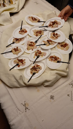Festa di compleannno tono tondo Stavolta non recensisco il ristorante, che frequento da anni, ma voglio recensire lo splendido servizio di catering che hanno fatto a Milano per la mia festa. Una sera a novembre, mangiando lessi, gli ho lanciato una sfida di fare il catering per la mia festa di un compleanno tondo tondo, e Manuel la ha accettata. Io vivo all'estero, e sono ritornato apposta per questo party. Abbiamo organizzato tutto atraverso mail e whatsapp il cibo è stato fantastico, tra le varie proposte avevo scelto : Vitello tonnato 38 ( controfiletto di vitello con tonno fresco, salsa tonnata ed acciughe del cantarbico) Baccalà mantecato con curcuma e curry e croccante di polenta Caprino fresco in crosta croccante con miele Anelli di pizzoccheri con salsa al bitto Risotto al castelmagno con miele e riduzione di vino e porto. torta Chantilly Il tutto cucinato alla perfezione, assemblato in casa e/o scaldato in forno. Il risotto cucinato nella cucina di casa. Gli amici sono stati entusiasti della qualità e del servizio offero da Manuel , Pier e Ivan. i vini scelti sono stati all'altezza delle portate, con punte di champagne Drappier brut nature. Servizio eccellente, discreto, e attentissimo alle esigenze degli invitati. Avevamo problematiche di ciliaci, vegani e vegetariani, tutte spelndidamente superate. Non potevo chiedere di meglio...