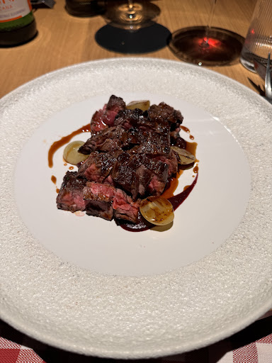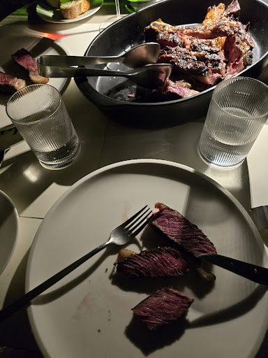 Read moreC’è qualcosa che non torna. Mi sento di dare questo titolo alla recensione. Abbiamo percepito tutti i presupposti per una cena di livello dai social del ristorante e poi anche nelle qualità delle materie prime annunciate, ma è mancata completamente l’anima e la cura del dettaglio. Arriviamo e non capiamo quale sia l’entrata, non ci sono cartelli sulle porte, gli ambienti son piuttosto spogli, la teca di vetro con la carne esposta molto molto simbolica. Veniamo fatti sedere vicino alla vetrata sulla cucina, ci viene portato il menù senza una parola di spiegazione: benvenuti? Il format prevede queste carni? Siete mai venuti? Posso darvi un suggerimento? Che tipologia di carne gradite?Giusto solo 1 parola sul fuori menu. Non abbiamo il tempo di leggere e la cameriera era di fianco a noi a chiedere: avete scelto? Chiediamo due minuti, e torna stando in piedi a distanza di 1 metro ad aspettare un nostro cenno. Un approccio che ci ha creato disagio, non c’era fretta, non c’erano altri clienti in attesa, ed erano le 20:15. Gli assaggi di cortesia son arrivati anche essi con grande frettolosità, si poteva aspettare l’arrivo del vino.. Ho trovato invece più accomandante e professionale il sommelier in turno, desideroso di scambiare due opinioni con gli ospiti. Durante tutta la serata il ristorante ha avuto sostanzialmente 6 ospiti, molti tavoli erano vuoti, visto il tempo a disposizione ci saremmo aspettati che lo chef venisse per un saluto o per portare il dolce, dando quel tocco di calore che appartiene a questa categoria di ristorazione. Nulla. Il cibo: abbiamo apprezzato la tartare e il toast al fegato. La bavetta buona ma disturbata a nostro parere dall’uso eccessivo degli aromi dei condimenti. Contorni a 8€ caduno discreti e con grammatura molto ridotta. Il monte bianco è arrivato con la cialda di meringa bruciacchiata e si percepiva molto al gusto, nel complesso un dolce un po’ improvvisato. In conclusione per noi una stella all’ambiente perché quel che manca è davvero un’ anima e un po’ di calore e cura...