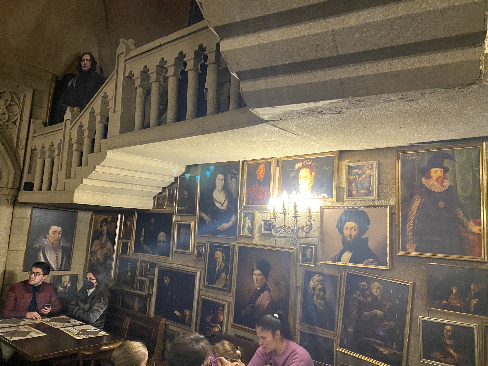 Read moreViaggio a Hogwarts e ritorno! Così si potrebbe definire la serata che ho trascorso ieri al Lumos Pub. Entrati in giardino con statue a grandezza naturale e decorazioni a tema, ci siamo subito sentiti proiettati nel fantastico mondo di Harry Potter. Dopo qualche attimo, il tempo di una foto, dei ragazzi gentilissimi con cravatte in stile divisa di Hogwarts ci sono venuti incontro e ci hanno accolto verificando la prenotazione e accompagnandoci dentro. Entrati nel locale, la febbre di Potter sale e sale e sale: Troll che sbucano dal muro, ritratti, cartelloni, decorazioni, oggetti di vario tipo (tra cui un pentolone magico con un mestolo che girava da solo) gadget sfiziosi, ti inebriano e gridano al bambino che è in te. Un gentilissimo "benvenuti" da parte di un signore dello staff e un attimo dopo ci si para davanti il Professor Piton che ci guarda e ci apostrofa con tono di superiorità: "Babbani". Le sale interne sono arredate in perfetto stile maghetto: su di noi le scale semoventi, le sagome dei personaggi a grandezza naturale, scope volanti, creature magiche e i quadri alla "Hogwarts", una citazione speciale va poi al bagno/ministero della magia, tutto da scoprire. Al tavolo ci accoglie Gianni Potter, un cameriere simpaticissimo e amichevole, pronto a giocare con noi, e che strizza sempre l'occhio al mood della serata. Il menù, elettronico, ha tante cose particolari e gustose, c'è davvero l'imbarazzo della scelta. Stavamo decidendo cosa prendere, quando in sala iniziano a sciamare alcuni dei personaggi dei film: il già citato professor Piton, la professoressa Cooman, il professor Lupin e Bellatrix Lestrange. C'è da dire che la somiglianza agli originali, oltre alla bravura nell'interpretazione, è strabiliante. Tutti, prima o dopo, si avvicinano ai tavoli e ognuno, secondo lo stile del suo personaggio, si intrattiene con gli ospiti. C'è anche lo smistamento nelle case con il cappello parlante, chi non spera di essere un grifondoro... Il servizio è stato rapido e il cibo si è rivelato essere all'altezza delle aspettative. Le portate hanno nomi a tema, ad esempio io ho iniziato con dei boccini d'oro, e proseguito con un panino Ron Weasley. Tutta la cena è stata un connubio perfetto di sapori, allegria e vita di Hogwarts: un mangiamorte in fuga, un dissennatore scacciato dagli ospiti, duelli di magia e lezioni di incantesimi. Se potessi darei più di 5 stelle, ne meritano 10 (e lode). È stato tutto veramente perfetto. Il servizio è stato veloce e simpatico: quando mi hanno portato i boccini d'oro, mi hanno avvisato che "tendono a volare via...". Il cibo è ottimo e soprattutto non comune, i prezzi sono nella media. L'allegria è l'ingrediente segreto. Consiglio davvero a tutti, anche ai non fan di HP, di andare al Lumos Pub e vivere questa esperienza. E' preferibile andare in settimana: noi ad esempio ci siamo stati di martedì. Il fine settimana è strapieno e non si possono fare prenotazioni. La prima volta siamo andati di venerdì ma c'erano talmente tante persone in attesa, che avremmo dovuto aspettare più di un ora e mezza per entrare. Ci tornerò di sicuro e voglio concludere facendo i complimenti a tutti i "protagonisti" di questa splendida serata: i camerieri, gli attori, i cuochi e uno particolare ai proprietari ideatori di questo "fantastico locale",...