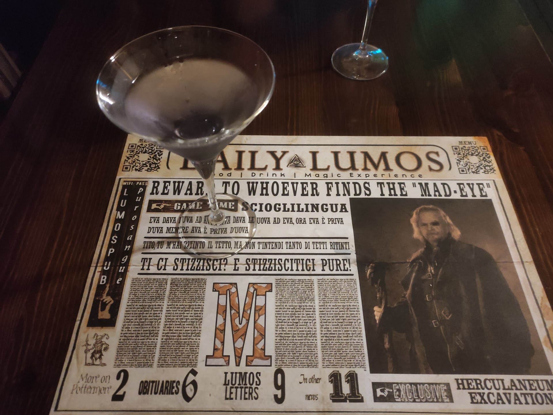 We returned the next day and had the cocktail from the picture, and the friendliness of everyone there made us feel right at home. They remembered our names, came to interact with us, and made sure we had a great night. I've mentioned Francesco and Davide because they were the youngest and we talked to them the most, but the woman we think was the boss or head of service was also an absolute gem, and we hope to see her in Spain. Also, a shout-out to the master of ceremonies who entertained us with the assassin game.