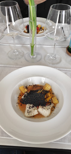 Read moreIl ristorante si trova alle Pendici del Vesuvio abbarbicato su un fianco dello "sterminator Vesevo". Parcheggi ed in pochi passi raggiungi il loro orto attraversando un ponticello sospeso su uno degli antichi canaloni che servivano al fluire delle acque in tempi remoti. L'orto è ben curato e vi accoglie con quello che sono i simboli del Vesuvio, i pomodorini sia gialli che rossi, diversi alberi delle famose crisommole e poco più in sù si staglia la Masseria Guida. Lungo il vialetto degli arredi, che poi ho scoperto essere opere d'arte, molto simpatici, sono di un artista napoletano che riadatta oggetti di uso quotidiano. In questo caso delle carriole si trasformano in colorate poltrone. Camminando tra i piccoli appezzamenti di erbe aromatiche ed ortaggi di stagione, un'altra installazione, un bellissimo cavalluccio a dondolo di 2 metri ed oltre. Ci accomodiamo nella bella sala, la ristrutturazione è stata fatta senza stravolgere l'essenza dell'edificio originale, mettendo in risalto il bellissimo soffitto a volta in pietra, il portone d'ingresso, il vecchio è imponente torchio...c'è persino un pozzo artesiano!!! Le sale sono intime e curate ed al piano di sotto c'è una interessante cantina con il soffitto in vetro che lascia intravedere le centinaia di bottiglie presenti sugli scaffali. Il menù è vario, con portate sia di mare che di terra ed i piatti incuriosiscono. Dall'entrè servita si inizia a capire il tipo di cucina che ci attende, innovativa ma molto legata alla tradizione ed al territorio. Nel menù ci sono le capesante e non possiamo esimerci da ordinarle, rappresentano uno dei miei pallini gastronomici e la descrizione del piatto mi incuriosisce non poco. Capesante alla carbonara e crema di broccolo romano, buona la cottura, ottimo l'accostamento con lo zabaione. La nota croccante del guanciale, la frescezza del cavolo e la sapidità del pecorino e del fagiolino di mare appena accennata costruiscono un ottimo piatto. Continuiamo con un secondo antipasto espressione della loro essenza con tutti ingredienti provenienti dall'orto che circonda la masseria. Una lavagna sulla quale stanno scrivendo giorno dopo giorno la loro storia: al centro i pomodori ed alcuni ortaggi di loro produzione, ai lati una serie di piatti tradizionali molto ben eseguiti. Il primo è un raviolo ripieno di parmigiana, la pasta ha un bel colore verde acceso perchè fatta utilizzando il profumatissimo basilico, a copertura una fonduta di fiordilatte abbrustolita. La salsa di pomodoro utilizzata è molto dolce e poco acida, non mi sono potuto esimere dal dal fare la scarpetta...secondo me è il miglior complimento che possa ricevere un cuoco!!! I piatti classici e gli ingredienti sono il loro cavallo di battaglia, l'ho capito subito da come si leccava i baffi mio figlio mentre gustava i suoi candellotti alla genovese. I dolci freschi, estivi, molto equilibrati nei sapori, mi sarei aspettato almeno una nota di testa a caratterizzarli, ma nel complesso non male. In definitiva una bella esperienza dove elementi della tradizione come la cucina, il luogo, l'orto ben si amalgamano alla moderna ristrutturazione della masseria, agli accostamenti innovativi nei piatti, alla freschezza dei giovani proprietari ed al garbo dei...