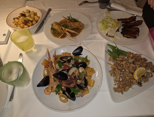 The three of us chose this restaurant due to its convenient location to our hotel. What a mistake that turned out to be! This was probably the worst meal we've had in a restaurant in a long time, and certainly the worst out of many restaurants we visited in the Naples/Ercolano region. The so-called baby squid dish was nothing more than deep fried, excessively salty leftovers, definitely not baby squid. It resembled inedible scraps, the kind you'd normally discard. We couldn't eat it; it tasted like deep fried breadcrumbs loaded with salt. The pumpkin filled ravioli dish was equally disappointing, consisting of just one ravioli topped with scampi. Setting aside the absurdly high price and tiny portion size, the combination of pumpkin ravioli with the salty, seawater taste and smell of the scampi was unpleasant. The BBQ ribs were another letdown: four small, sad looking pieces that were dry and mostly fat, with very little meat. Ironically, the only edible item was the side dish of potatoes, which cost €6 at least it wasn't as awful as everything else. All of this amounted to €120, without drinks. I'm unsure if we visited on an exceptionally bad day or if this is the standard for this restaurant, but our experience was just unacceptable. We wanted to say something but waiter never asked how was our meal, so we decided to let it go just pay the...