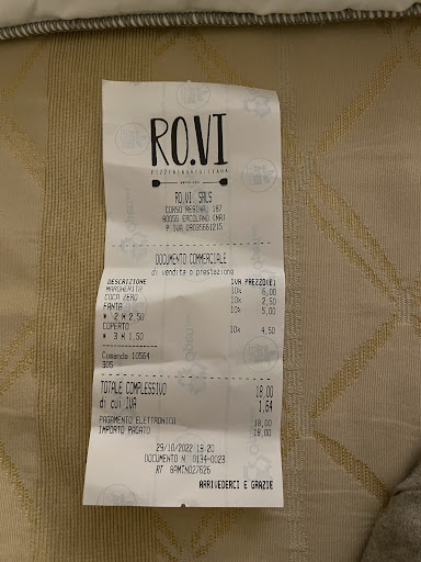 Read morePrima volta a San Valentino dal Ro.Vi pizzeria, una piacevole scoperta. Personale accogliente, disponibile e dinamico nel gestire la sala rispondendo alle richieste dei clienti nei tempi giusti. Locale pulito e curato nei dettagli, dallo stile elegante e minimal. La cosa più piacevole è l'atmosfera tranquilla, musica molto soft e ambiente silenzioso, dove poter passare ore di tranquillità in compagnia del buon cibo. L'antipasto formato dai fritti è fatto in maniera perfetta; crocchè, frittatina di paste e arancino, tutti con panatura croccante, interno composto da ingredienti di qualità e il sapore si sente, ma per la prima volta è un fritto che non unge, non so se è la bravura dello chef ma ho l'impressione che siano passati al forno dopo esser stati fritti, in ogni caso complimenti perchè si vede che sono studiati. Arriviamo alla pizza, abbiamo scelto "La mista" e "Marinara a modo nostro", impasto sottile, leggero e soffice, segno di una alta percentuale di idratazione; ingredienti freschi e di qualità, le spezie come l'origano e il basilico sulla marinara rilasciavano un'ottimo odore. La pizza è fatta con prodotti di qualità e si sente a partire dalle basi, ho notato attraverso la pizza "mista" il profumo predominante della farina; una farina di qualità, e mi piace. La parte deludente della serata è stata il dolce, si notava che avevano finito i dolci e con astuzia hanno elaborato una serie di dolci veloci, riciclando l'impasto della pizza. Bombetta a nutella, bombetta con ricotta e marmellata di albiocche, straccetti con nutella queste le loro proposte, mentre in un altro tavolo avevano servito un tiramisù o altri dolci freschi. A mio avviso, se hai un numero di coperti prenotati, per loro almeno il dolce lo devi riservare, per chi si aggiunge all'ultimo magari ripieghi su altro. Tuttavia a prescindere da questa piccola pecca, il dolce non è stato di nostro gradimento, troppo pesante dopo aver già mangiato fritti e pizza; consiglio di proporre delle crostate servite con uno spruzzo di panna o del gelato alla vaniglia. Qualcosa di sempre pronto e che puoi consumare su più giorni. Altra piccola nota è la mancanza di un posto auto, in settimana può andar bene, un piccolo ripiego lo si trova, ma penso che nei week end sia più difficile da gestire. In ogni modo ci torneremo sicuramente, per assaggiare l'ottima pizza e godere dell'accoglienza e dell' atmosfera tranquilla e lontana dal...