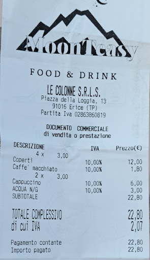 Read moreWarning: Total rip-off! Ordered 3 coffees and 1 water: Price: €22.80 - they charged €3 per person for the cover charge! Water was served in a plastic cup. A very long wait to be served; service was also extremely unfriendly and inattentive. When we asked what the charge for 4 cover charges (a total of €12) was for, we received the answer: "Because we were sitting while drinking coffee." (However, a cover charge would only have been justified if they had also provided a loaf of bread - but this wasn't the case!). Conclusion:...
