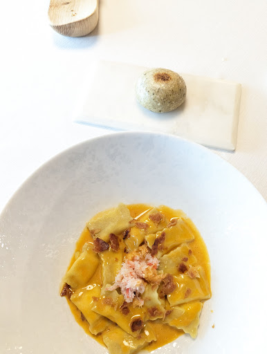 Read moreRistorante inserito nel delizioso e romantico contesto dei Colli Euganei. Il locale è arredato in maniera molto raffinata, con tavoli rotondi, ben distanziati e accompagnati da un altrettanto raffinato servizio di ceramiche e bicchieri, così come i centro tavola (allestiti secondo ogni stagione da artigiani locali) e il "light design", a cui io presto molta attenzione. Il servizio è ai massimi livelli, mai invadente, ma allo stesso tempo mai manchevole, senza la minima sbavatura, sin dall'accoglienza. Ogni piatto viene descritto dal personale di sala, giovane e preparato, in maniera coincisa ma dettagliata. Dopo esser stati accolti, arriva il "benvenuto dello chef" insieme al loro pane, preparato con lievito madre e servito appena sfornato dal loro forno a legna insieme a del burro della Normandia (insuperabile), oltre ai loro grissini, tirati a mano. Il menu, ci hanno detto gli chef al termine della serata, cambia in funzione della stagionalità dei prodotti che il loro territorio offre, aspetto sul quale sono molto attenti e che ho molto apprezzato (scelgono personalmente le materie prime girando per i vari produttori locali). I piatti sono raffinati con abbinamenti mai banali e offrono un'esperienza sensoriale che è difficile da trovare. La loro cantina, infine, è un paradiso per gli amanti del vino. È stata in definitiva un’esperienza meravigliosa, torneremo...