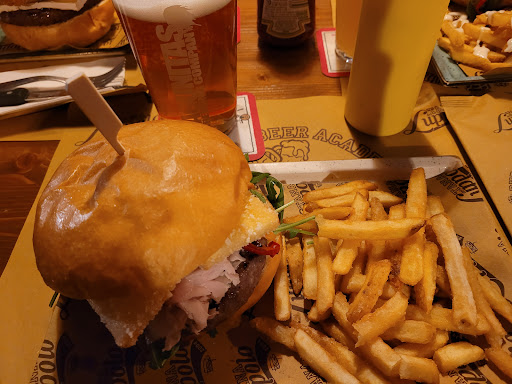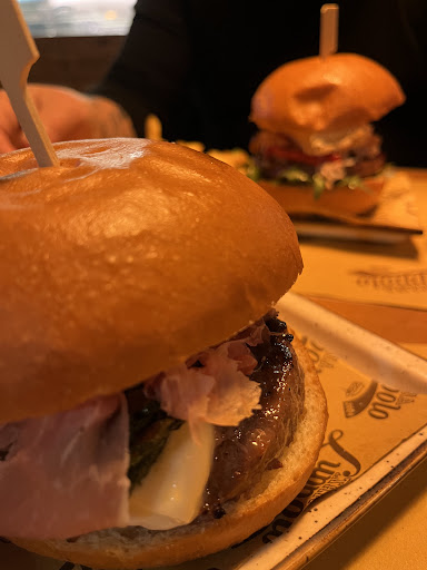 Read moreRispetto al locale storico di Lendinara, a Este hanno comprensibilmente scelto uno stile un po' più raffinato, sia nell'arredamento del locale sia nell'assortimento del menu. Hanno comunque mantenuto qualche hamburger classico dalla carta dell'altro locale, ma la scelta qui è molto più ampia (oltre a dei panini un po' più elaborati, fanno anche primi e pizza). Rimanendo ai panini, devo dire che la proposta "gourmet" non è male, e che anzi gli accostamenti fra gli ingredienti ci stanno: un buon panino, abbondante ma senza strafare, con ingredienti gustosi ma non esageratamente pesanti. A mio avviso non il panino più buono di Este, ma nell'insieme mi è piaciuto parecchio. La cosa che mi ha colpito di più sono comunque i prezzi, veramente bassi per quello che si mangia: tra panino e birra ce la si cava con meno di 20€. Ho qualche perplessità invece sul servizio, che dà un po' l'impressione di una catena di montaggio (stavamo ancora masticando e già ci chiedevano del caffè), e sull'acustica del locale, veramente...