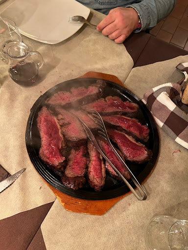 Nulla da eccepire, un locale che mi permetto di consigliare, spassionatamente. Esperienza di ieri sera, martedì 9 giugno, io e mia moglie. Veniamo accolti con molta cortesia e professionalità da un gentilissimo e discreto addetto alla sala, che scopriremo, nel corso della nostra degustazione, essere il figlio del proprietario. Molto bello vedere dei ragazzi giovani che sanno muoversi con disinvoltura e classe in una professione non sempre facile. impegnativa e di sacrificio. Veniamo al menù: abbiamo seguito i consigli del nostro ospite ( a pagamento, ma ci stava pur sempre ospitando!), ed abbiamo esordito con un delicato rotolino alla parmigiana, squisito. Ma il vero "trionfo" e naufragio è stato con le carni, grazie ad un' ottima fiorentina, da chilo, cotta alla perfezione, gustosa, rosacea ma senza sbavature di sangue, si liquefaceva in bocca, servita con delle patate strepitose, su una piastra di ghisa. Un degno refosco locale in abbinamento, proposto anche al calice. Diversi sali da provare, e macinare sul momento, dal nero di Cipro, all'himalayano rosa, a quello, sempre ottimo, di Maldon, anche nella sua variante leggermente affumicata. Olio toscano, Gonnelli, superlativo. Una bella serata, in un luogo dove sarà un piacere ritornare. Conto finale di esemplare correttezza ed onestà: 62, 50 euro in due. Se non ricordo male anche due calici di bianco come aperitivo e l'immancabile bottiglia d'acqua minerale. Sine qua non. Grazie. Luca ed...