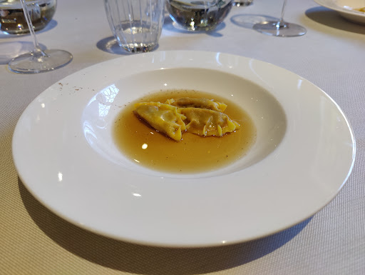 Read moreSi arriva in questa via del centro storico e guardando l'insegna in ferro battuto ti accorgi in fondo della statua di Garibaldi che a fine '800 ha contribuito all'unità dell'Italia. Si entra in un cortiletto silenzioso che ti conduce in un luogo appartato e riservato. Alla porta viene ad accoglierti Giorgia che con grazia ed eleganza ti conduce nella sala affrescata che ti riporta nelle campagne delle nostre colline italiane. Giorgia ti accompagna ad un ampio tavolo ed appena ti siedi nelle comode poltroncine comincia il viaggio tra le sensazioni, i sapori ed i colori che si sperimentano per tutta la serata. La discreta musica in sottofondo ti accompagna piacevolmente. Ogni proposta evidenzia lo studio e la passione che esprime chef Silvio, che dal mattino presto prepara ed analizza ogni particolare e grazie anche all'aiuto di un grande chef orientale espande ancor di più le prospettive culinarie mantenendo le tradizioni e può permettersi con discrezione di assicurarsi con i commensali del loro compiacimento. La serata scorre piacevolmente ed ogni piatto proposto accende curiosità e porta soddisfazione ed al momento dei saluti, senti di aver conosciuto grandi professionisti che regalano un'esperienza che sicuramente si vorrà riprovare....