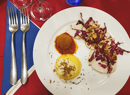 Ha sido una experiencia bastante agradable, participando en una cena de fin de año; he añadido tres fotos a la reseña: una del entrante, la otra del postre y la última de las lentejas. El entrante para mi ha sido un poco escaso, habría hecho algo más y el primer plato, aunque ha sido bastante bueno, habría puesto más salsa a las "pappardelle"... La pareja que cantaba ha estado guay y muy motivadora también y el cuerpo de los camareros ha estado bastante bien 🤗 P.s. Las lentejas eran muy buenas!!! Recomiendo en absoluto este sitio porque seguro que se pueden descubrir otros platos, afuera de una cena informal de fin de año. Buon...